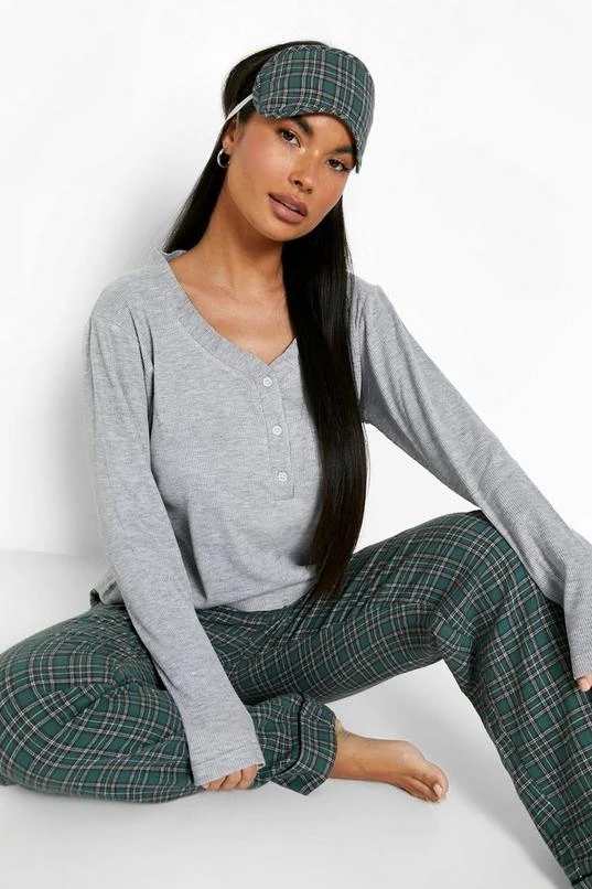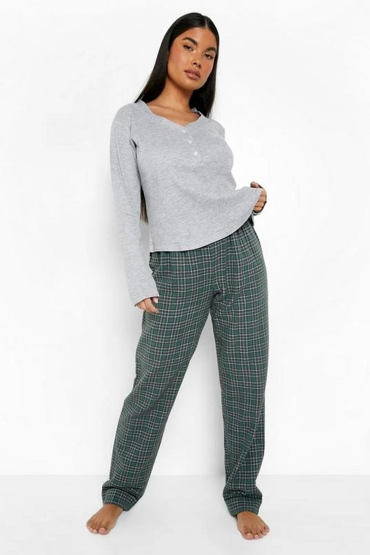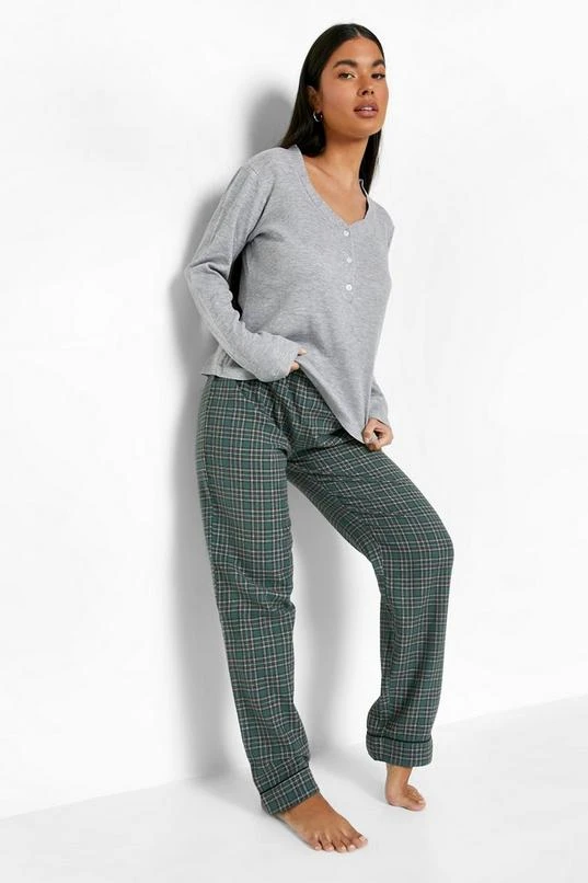 BOOHOO Petite Flannel 3 Piece Pants Pj Set