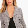 BOOHOO Petite Flannel Button Sleeve Blazer