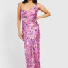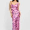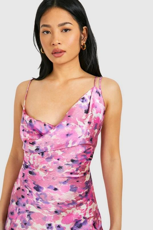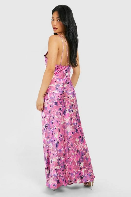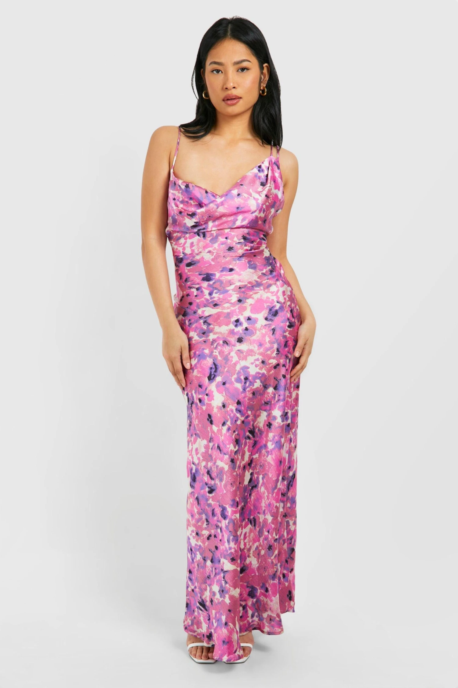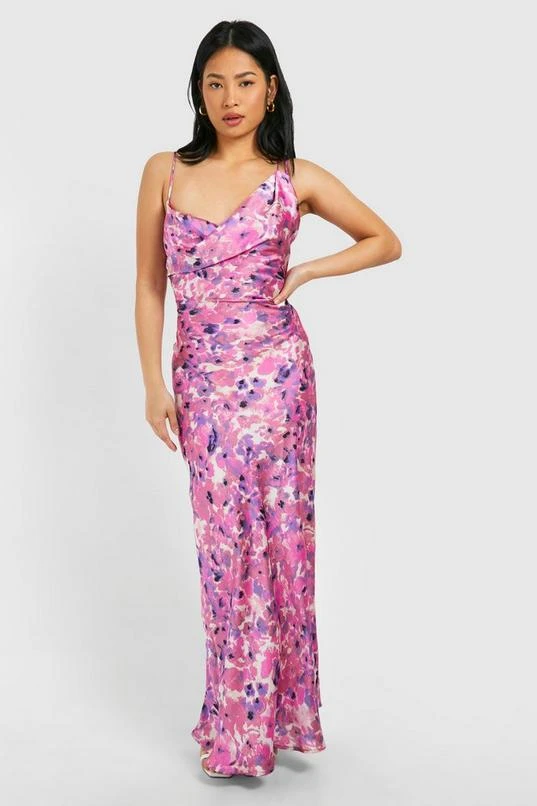 BOOHOO Petite Floral Asymmetric Cowl Maxi Dress