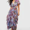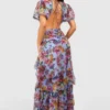 BOOHOO Petite Floral Dobby Mesh Cut Out Maxi Dress