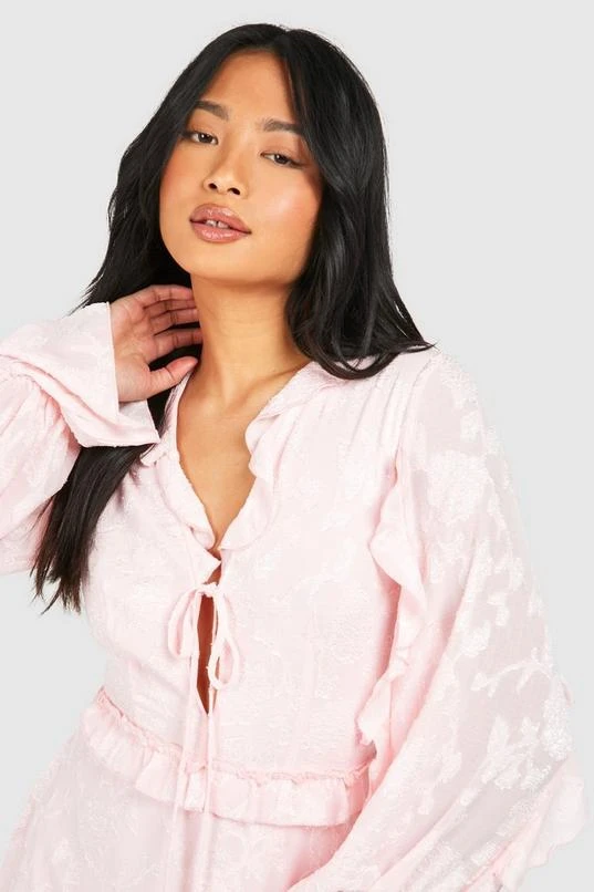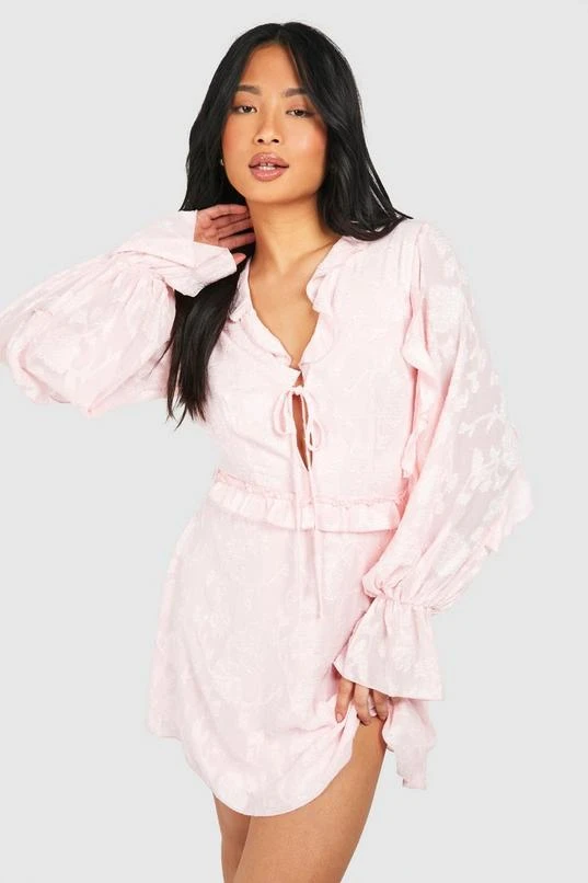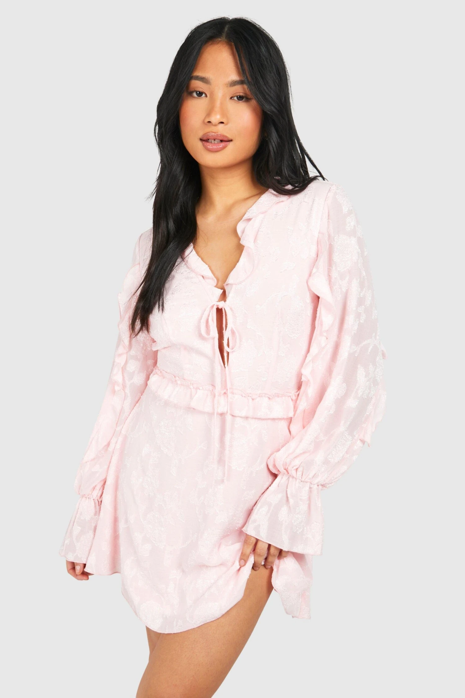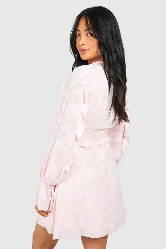 BOOHOO Petite Floral Jaquard Ruffle Mini Dress