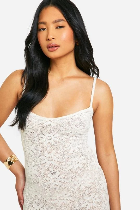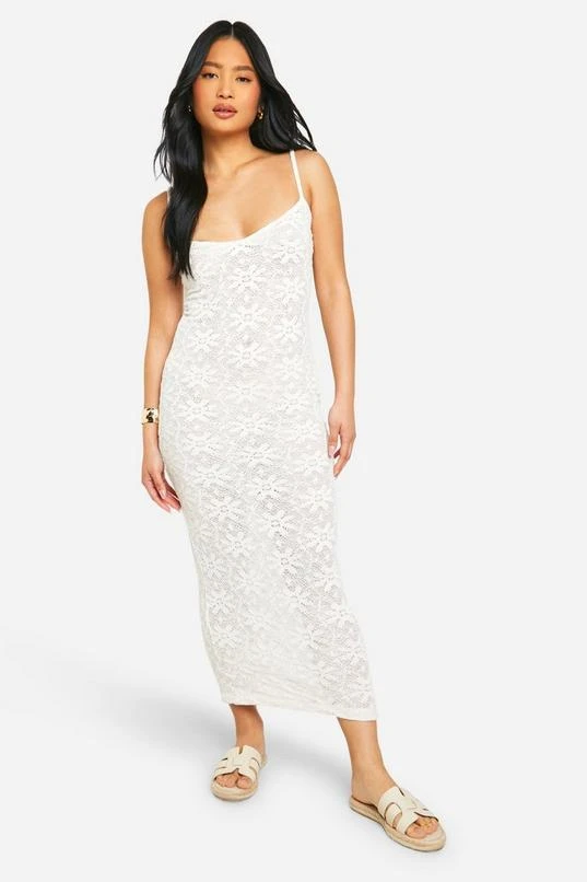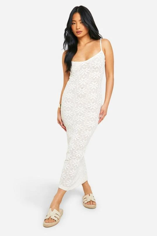 BOOHOO Petite Floral Knit Strappy Maxi Dress
