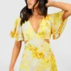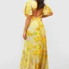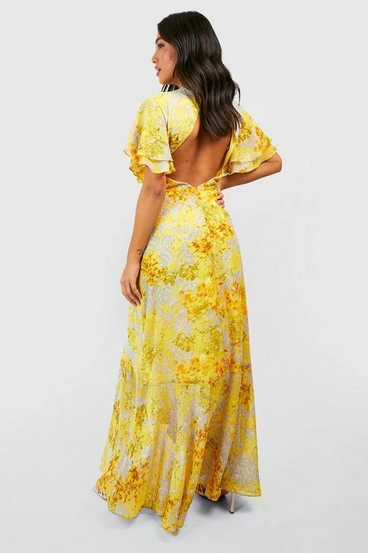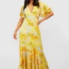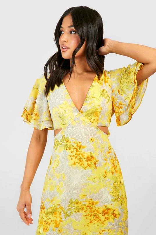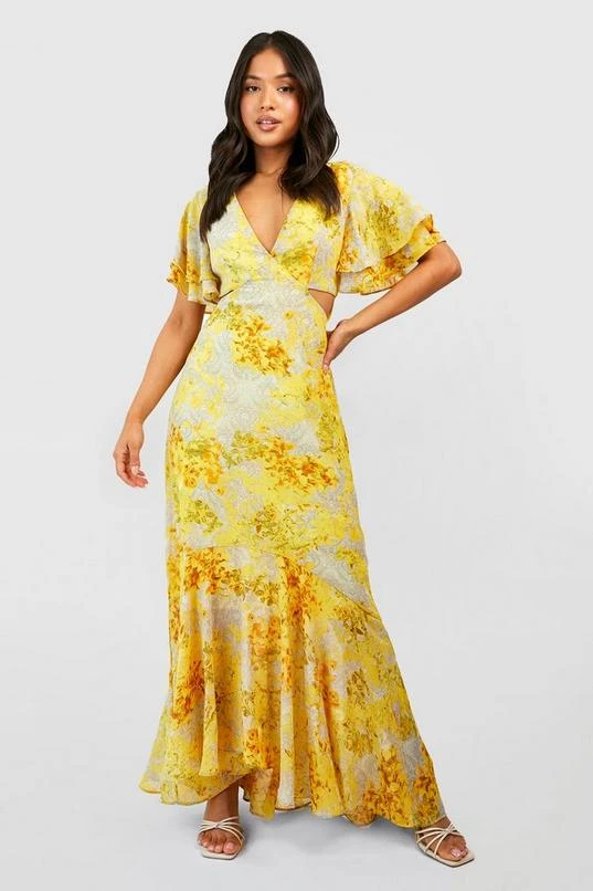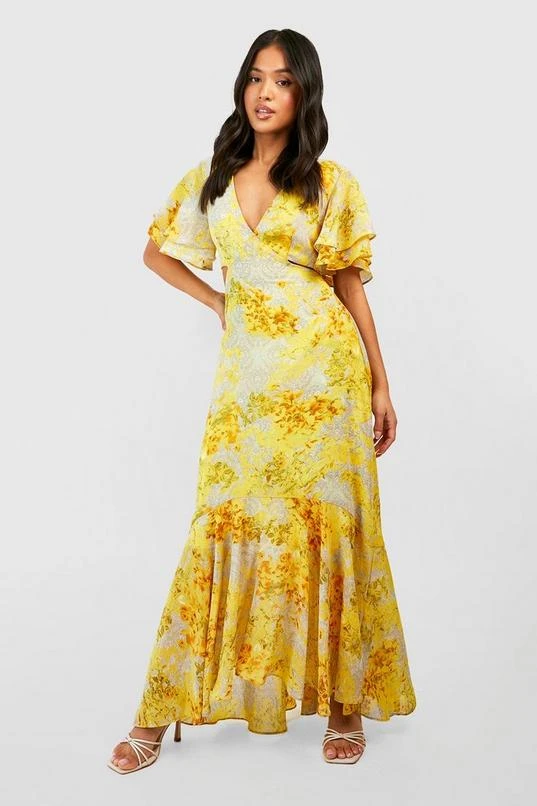 BOOHOO Petite Floral Print Angel Sleeve Maxi Dress