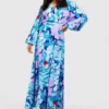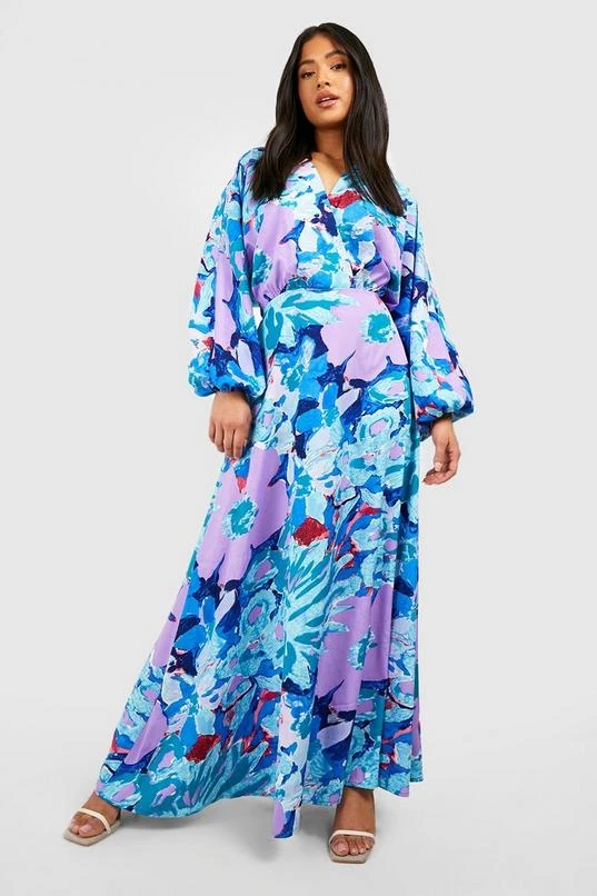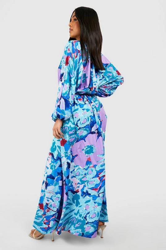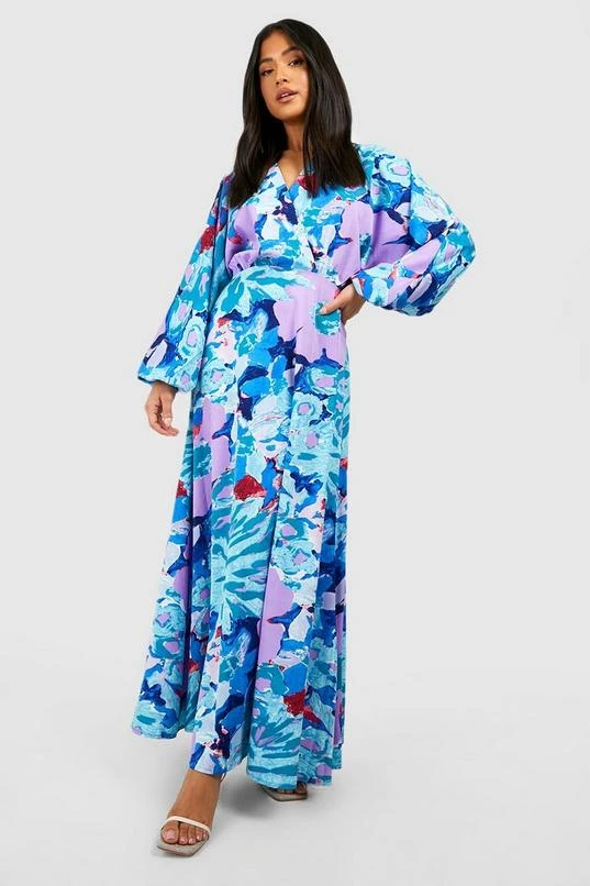 BOOHOO Petite Floral Puff Sleeve Wrap Maxi Dress
