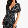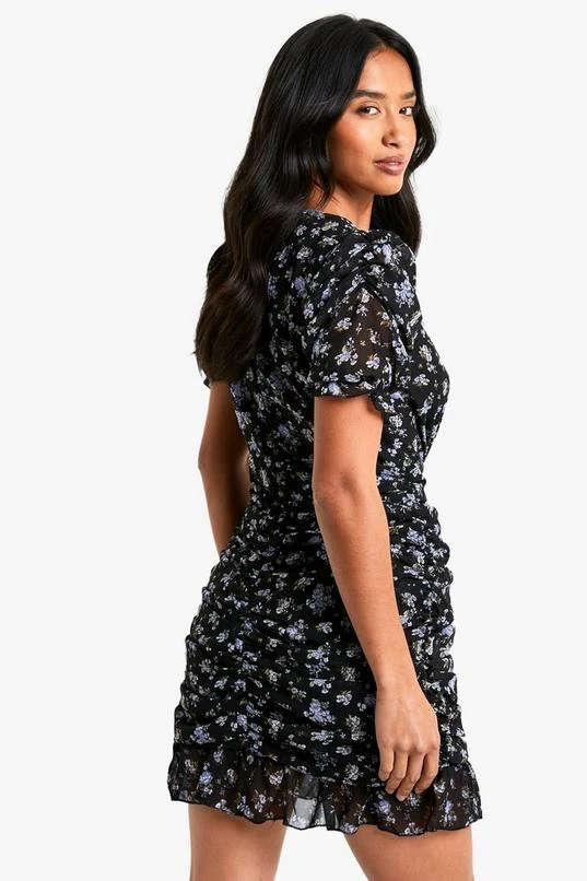 BOOHOO Petite Floral Ruched Mini Dress
