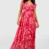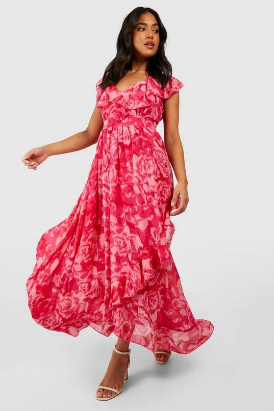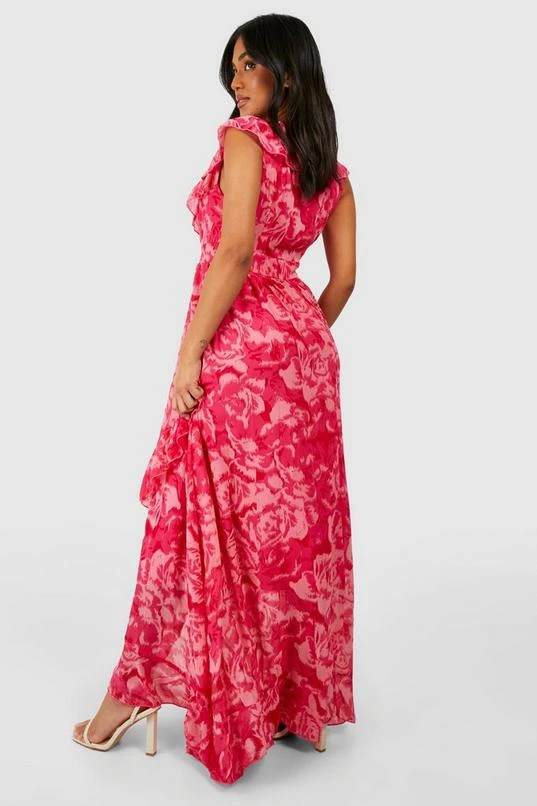 BOOHOO Petite Floral Ruffle Wrap Maxi Dress