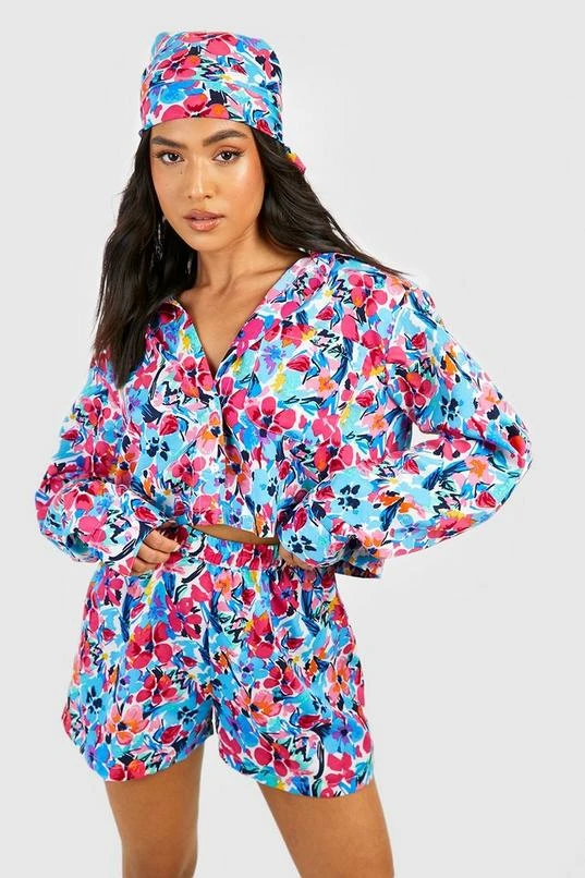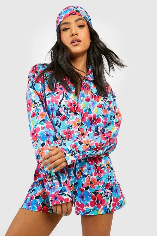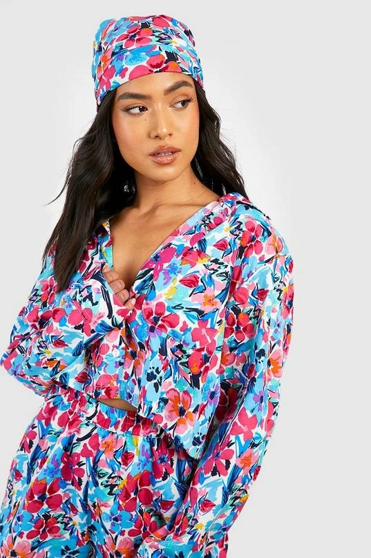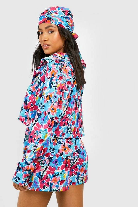 BOOHOO Petite Floral Shirt Headscarf And Short Two-Piece