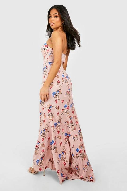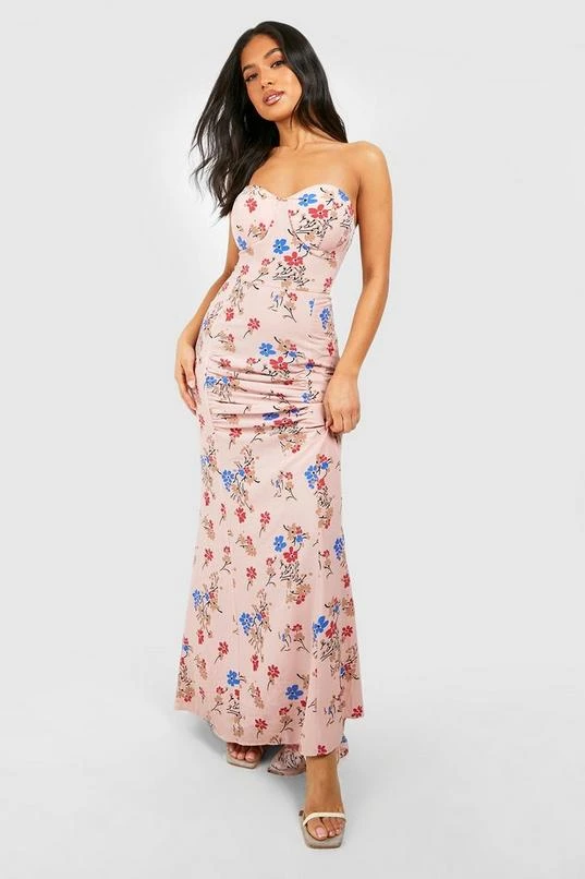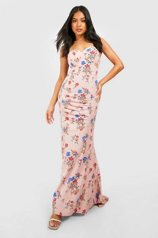 BOOHOO Petite Floral Woven Bandeau Corset Maxi Dress