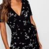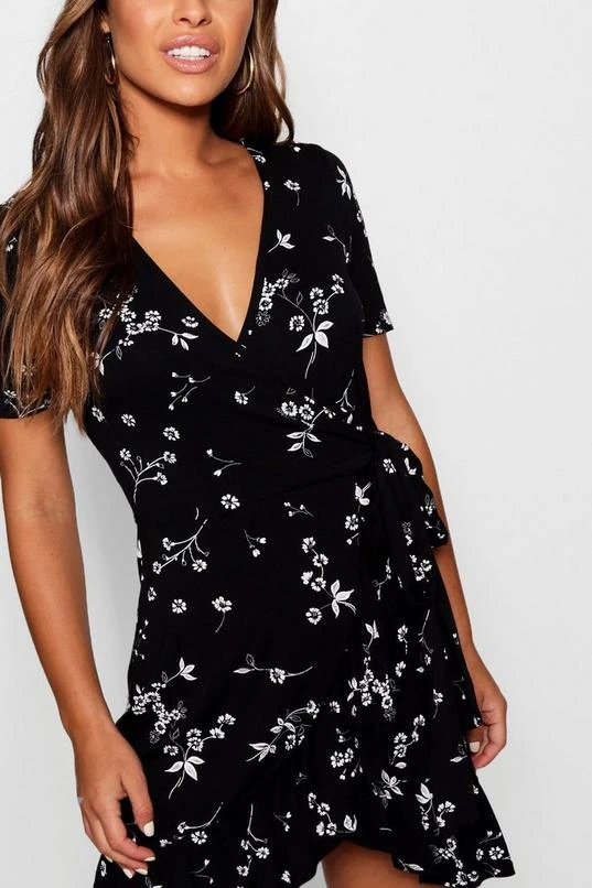 BOOHOO Petite Floral Wrap Frill Hem Dress