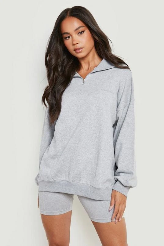 BOOHOO Petite Half Zip Sweat And Biker Short Set