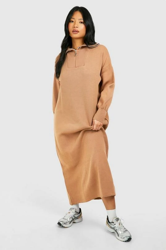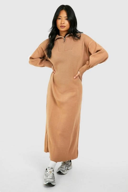 BOOHOO Petite Half Zip Sweater Midi Dress