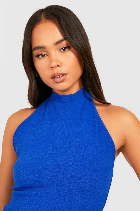 BOOHOO Petite High Neck Backless Split Leg Midi Dress