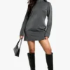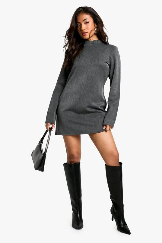 BOOHOO Petite High Neck Woven Tailored Shift Dress