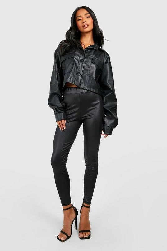 BOOHOO Petite High Waist Basic Shiny Leggings