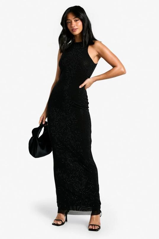 BOOHOO Petite Hotfix Diamante Racer Neck Maxi Dress