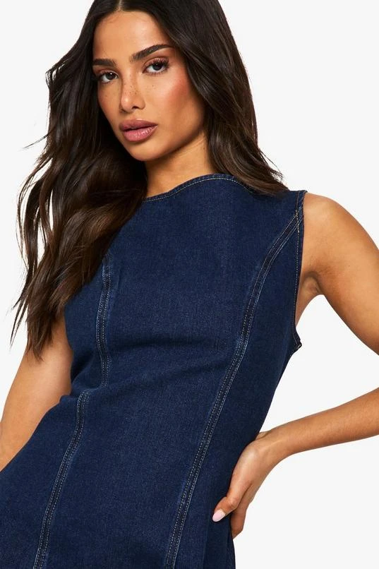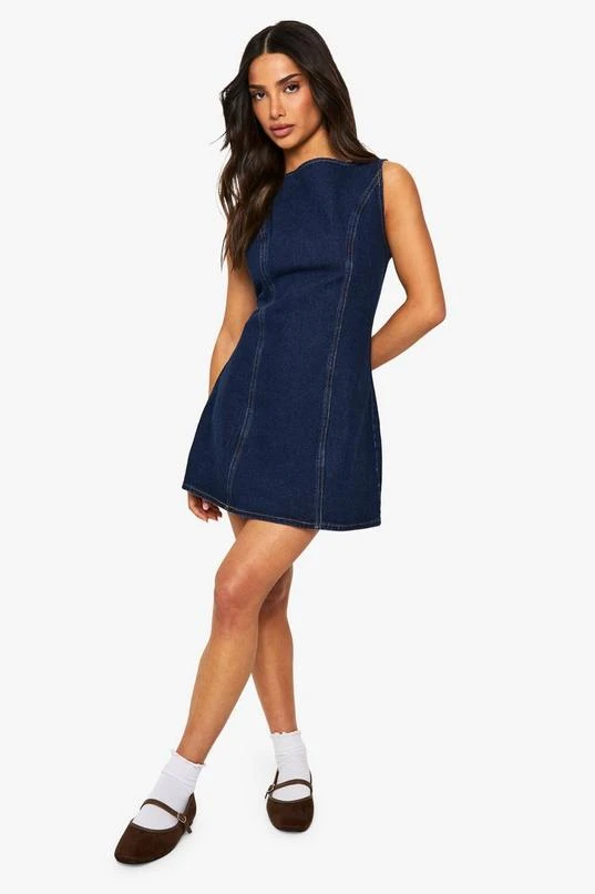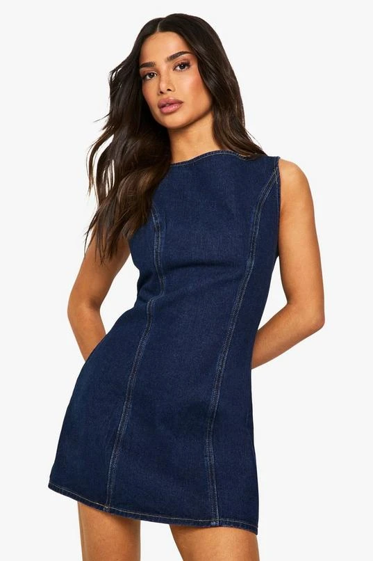 BOOHOO Petite Indigo Denim Fitted Shift Dress