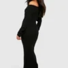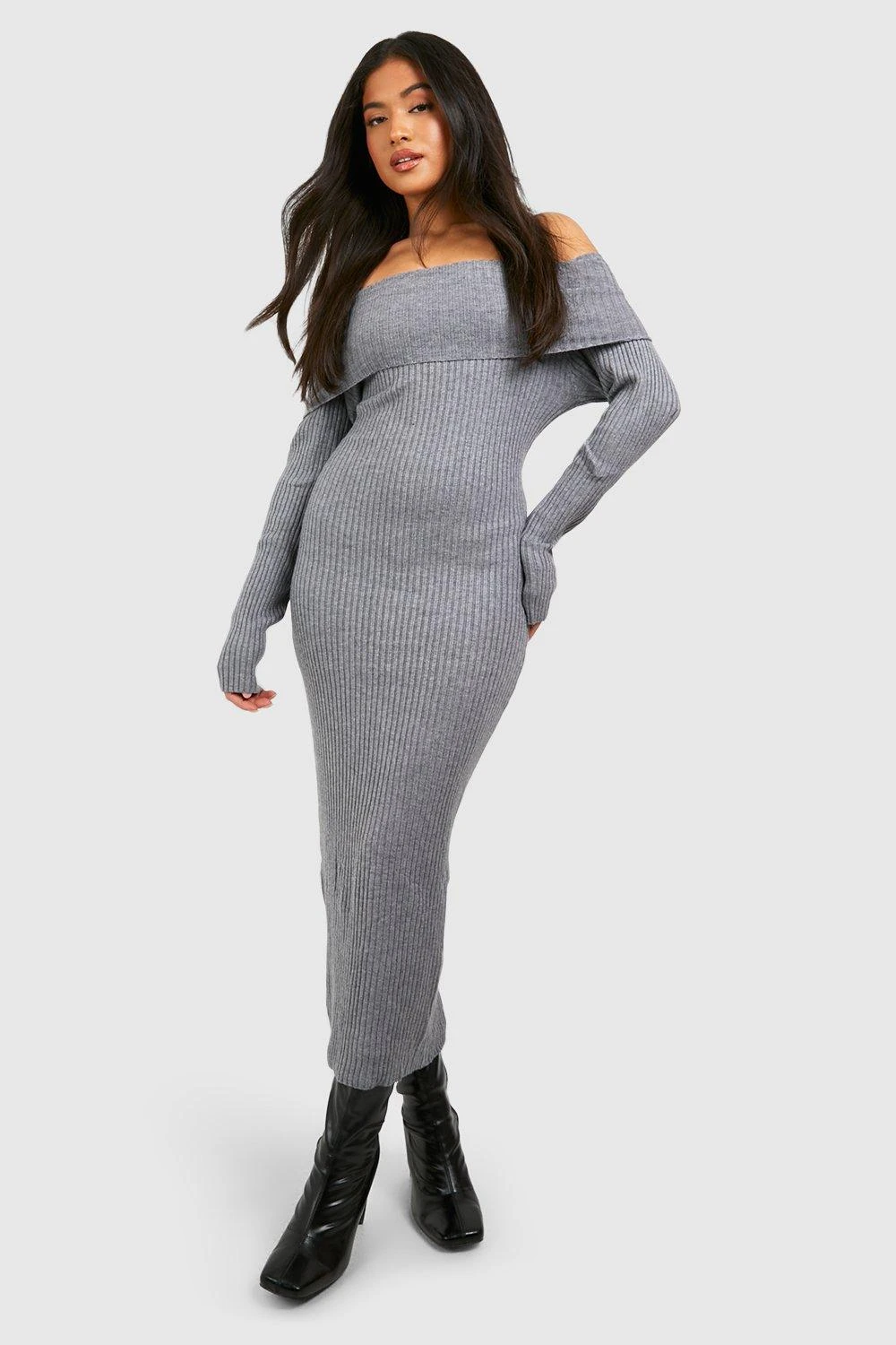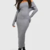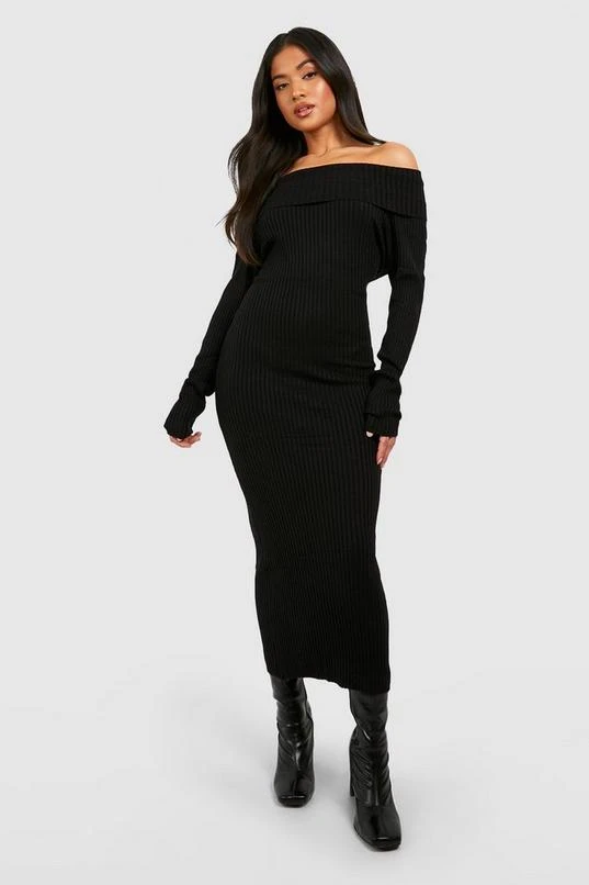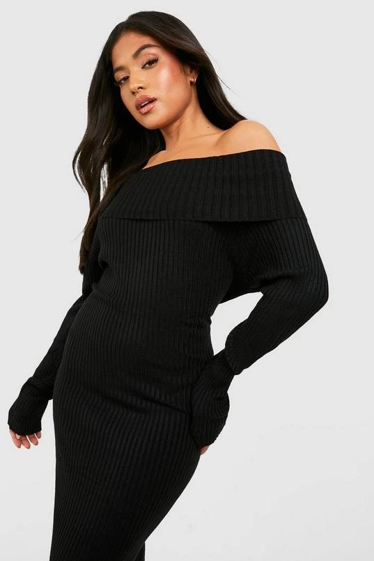 BOOHOO Petite Knitted Bardot Midaxi Dress