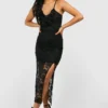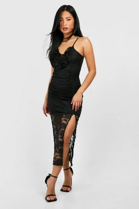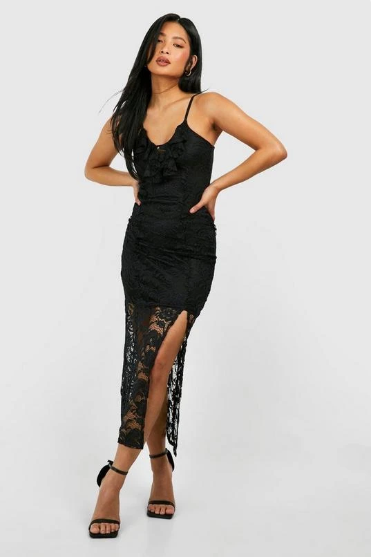 BOOHOO Petite Lace Ruffle Split Leg Midaxi Dress