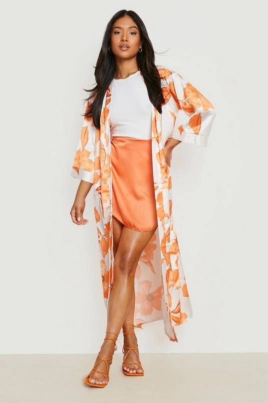 BOOHOO Petite Large Floral Maxi Kimono