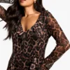 BOOHOO Petite Leopard Print Ruffle Shift Dress
