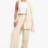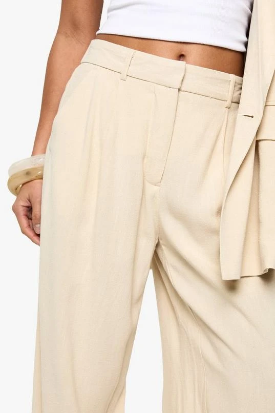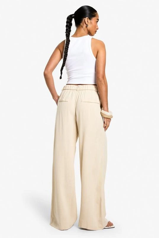 BOOHOO Petite Linen Look Straight Leg Trousers