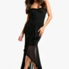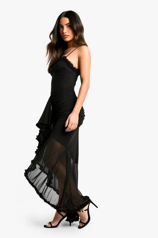 BOOHOO Petite Mesh Ruffle Maxi Dress