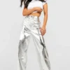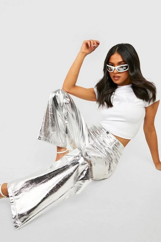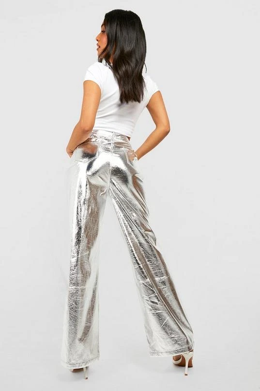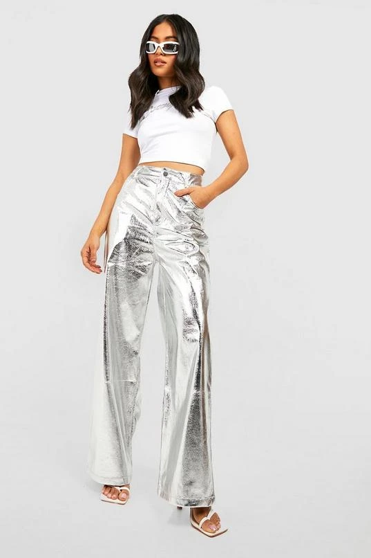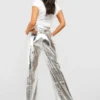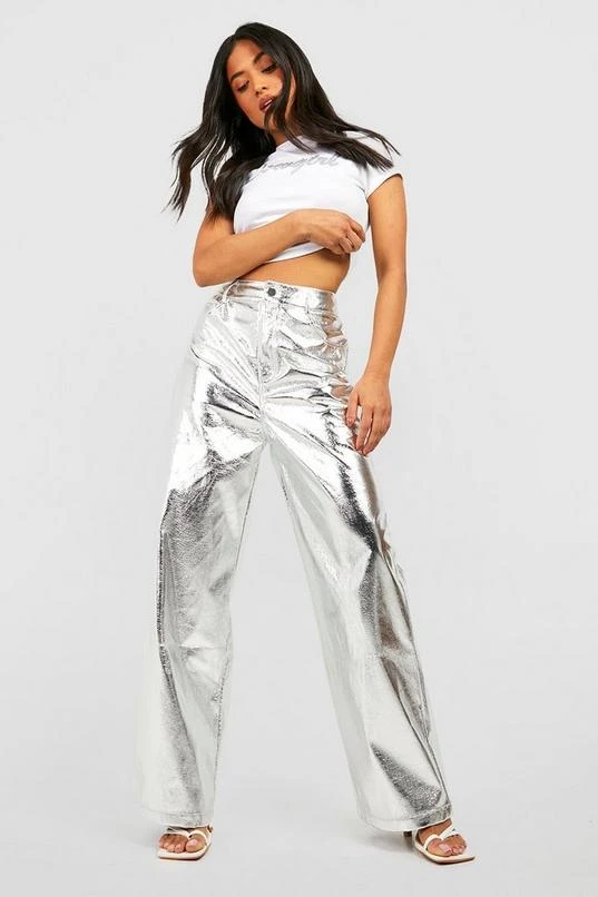 BOOHOO Petite Metallic Straight Leg Pants
