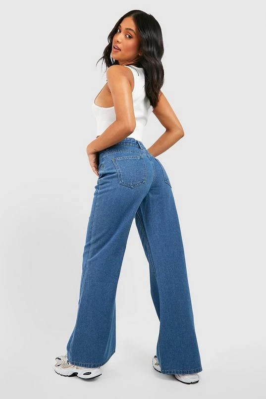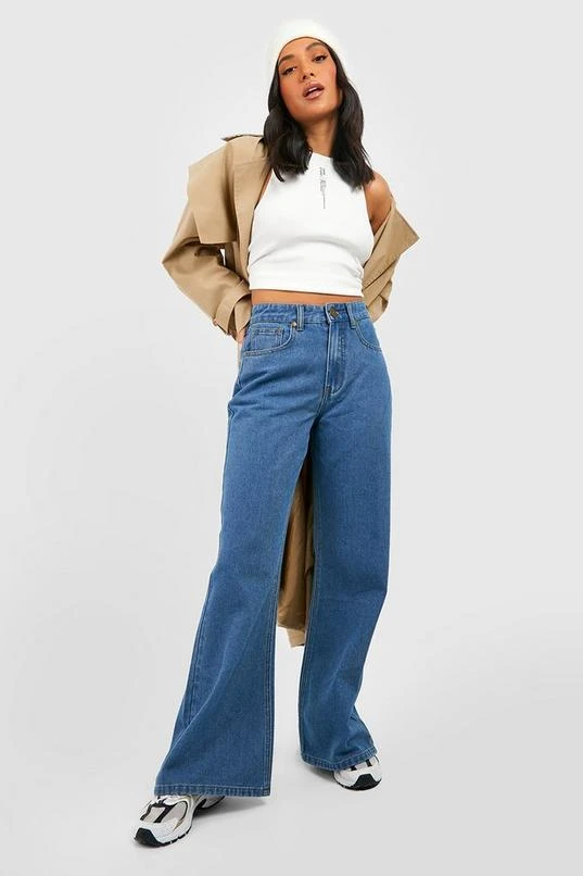 BOOHOO Petite Mid Wash Wide Leg Jean