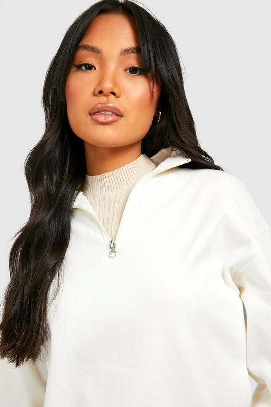BOOHOO Petite Mix And Match Basic Half Zip Sweatshirt