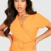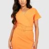BOOHOO Petite Off The Shoulder Belted Skater Dress