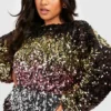 BOOHOO Petite Ombre Sequin Puff Sleeve Mini Dress