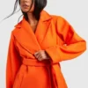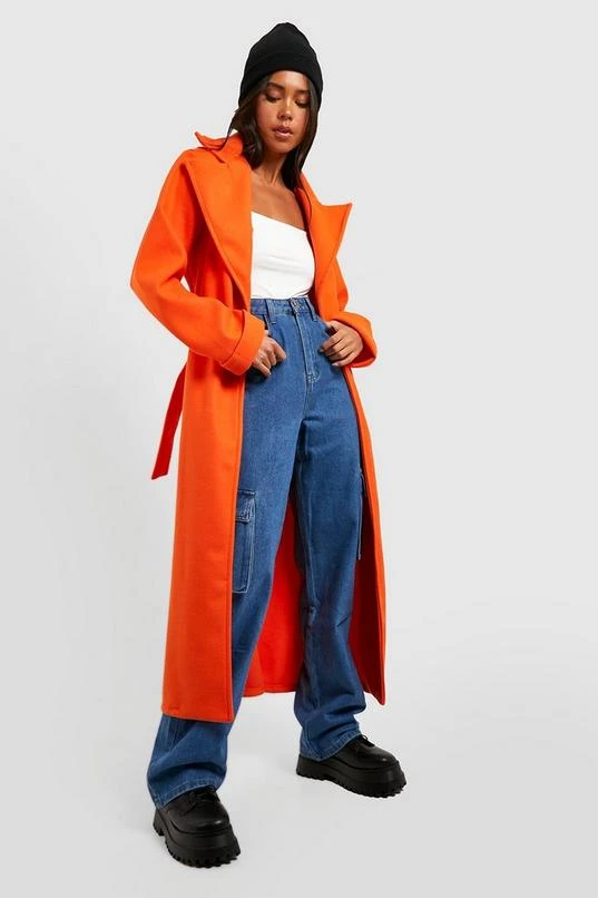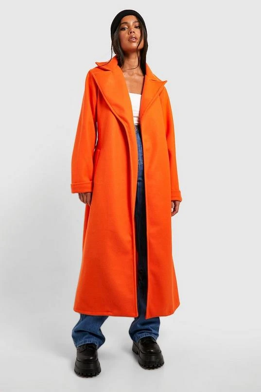 BOOHOO Petite Oversized Belted Wool Look Coat
