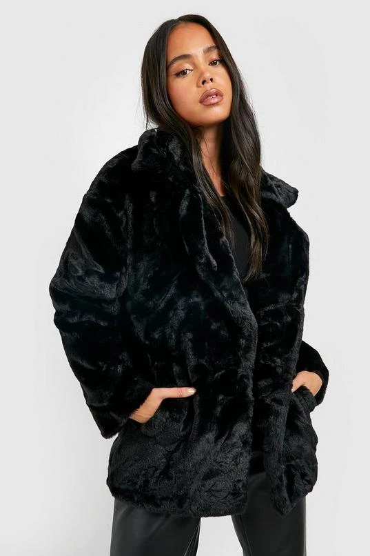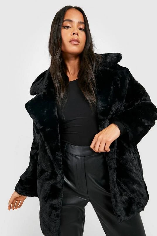 BOOHOO Petite Oversized Collar Luxe Faux Fur Coat