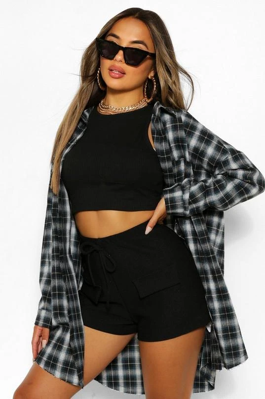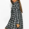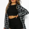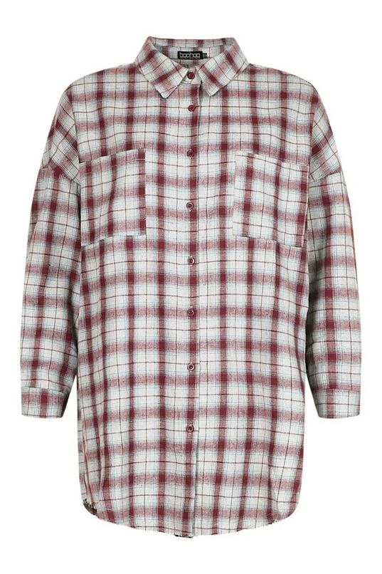 BOOHOO Petite Oversized Frayed Flannel Shirt