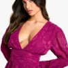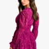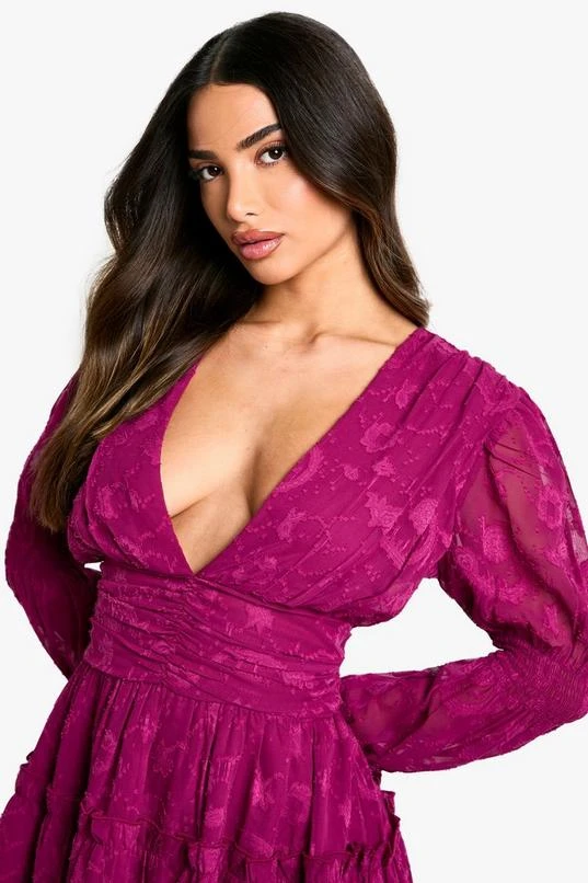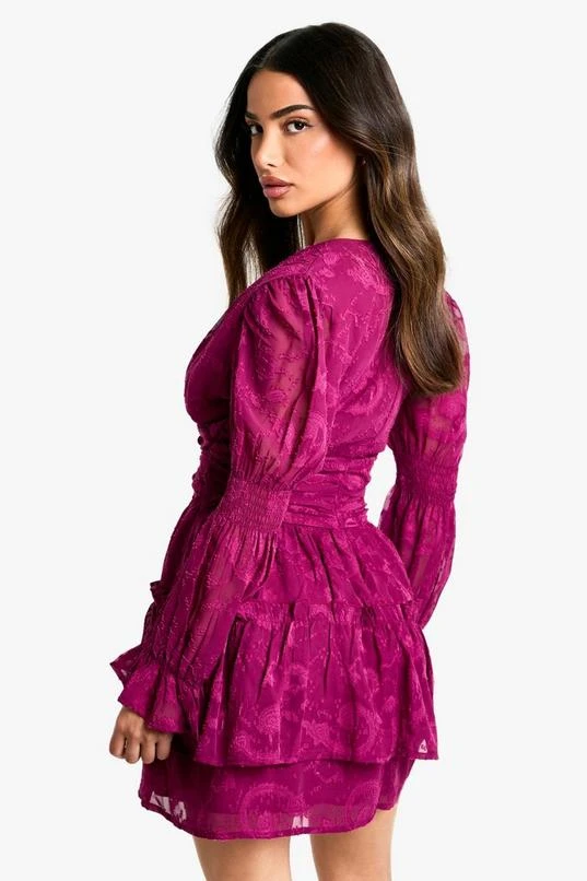 BOOHOO Petite Paisley Burnout Puff Sleeve Ruched Skater Dress