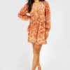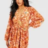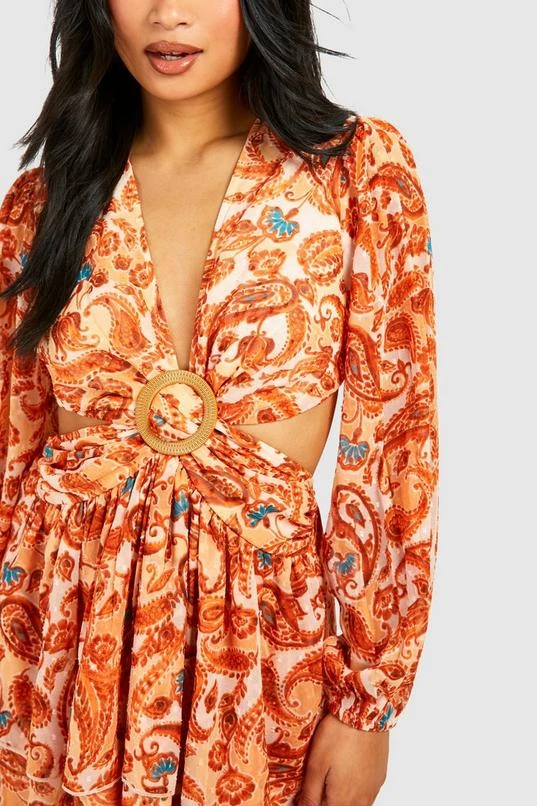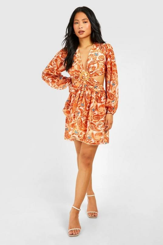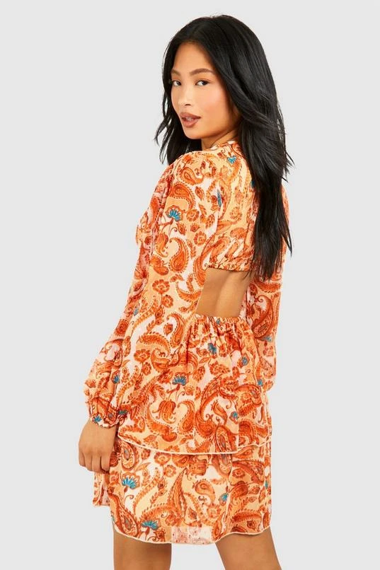 BOOHOO Petite Paisley Georgette Cut Out Mini Dress