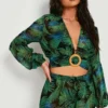 BOOHOO Petite Palm Print Buckle Top & Short Two-Piece