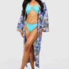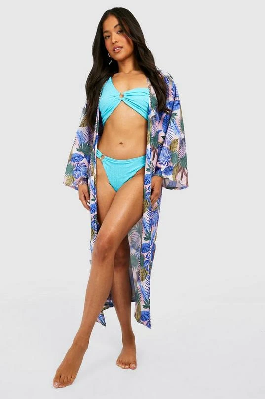 BOOHOO Petite Palm Print Chiffon Beach Kimono