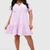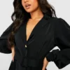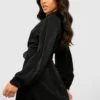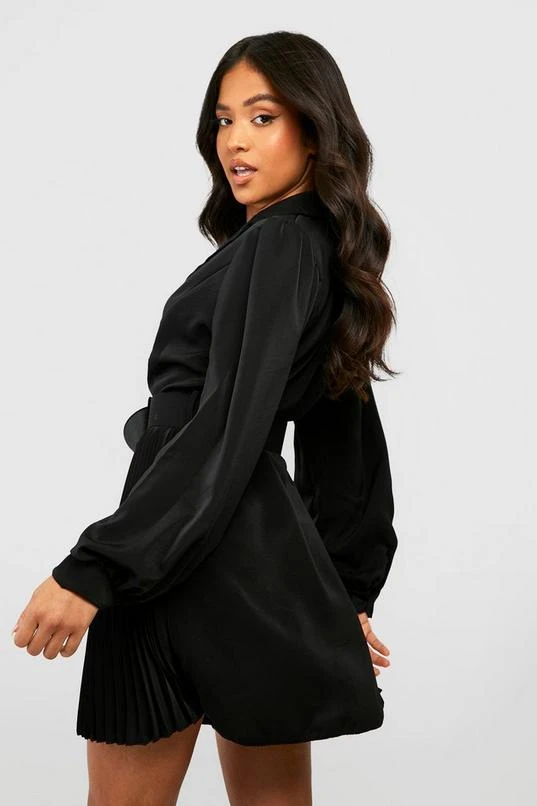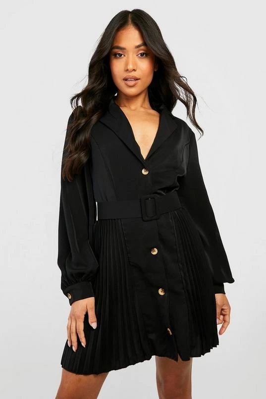 BOOHOO Petite Pleat Side Belted Shirt Dress