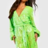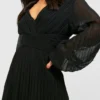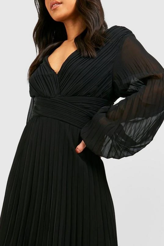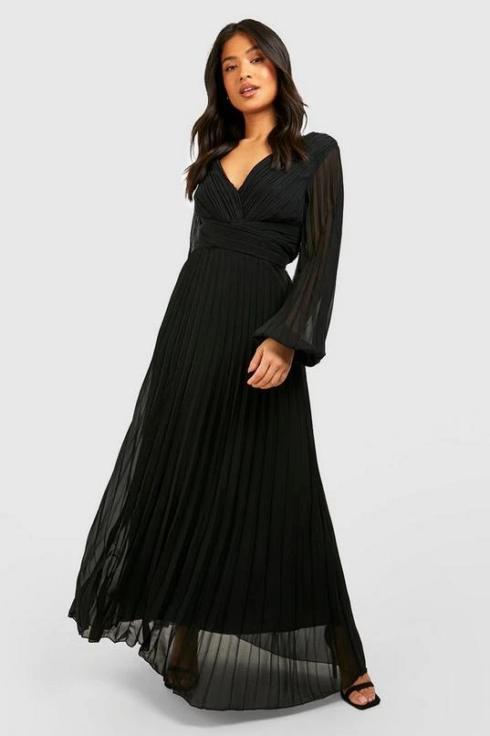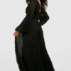 BOOHOO Petite Pleated Plunge Wrap Maxi Dress