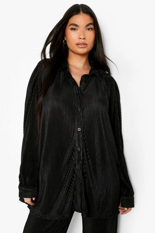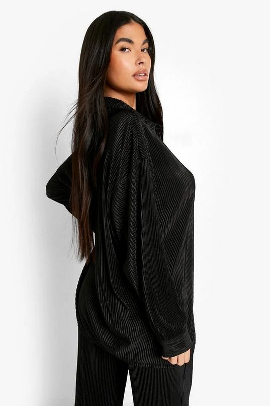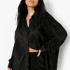 BOOHOO Petite Plisse Oversized Shirt