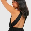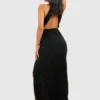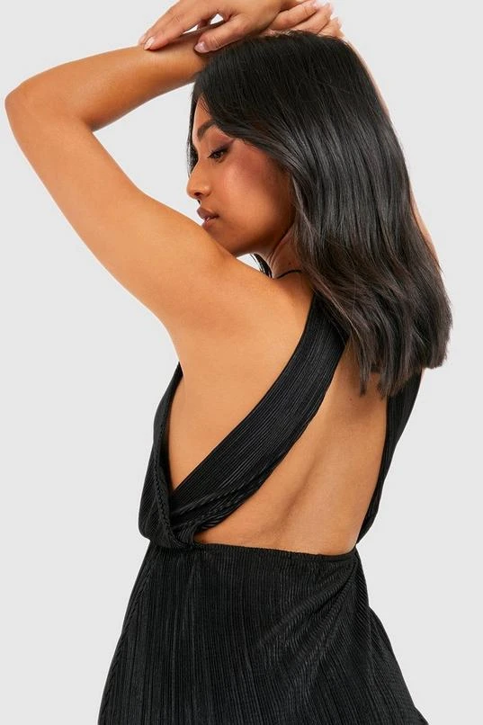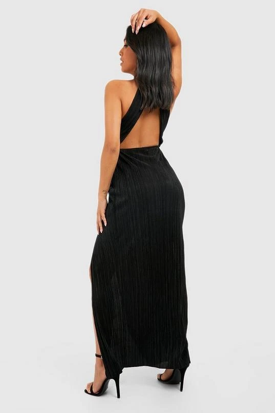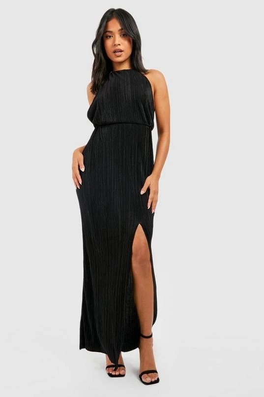 BOOHOO Petite Plisse Pleated Thigh Split Maxi Dress