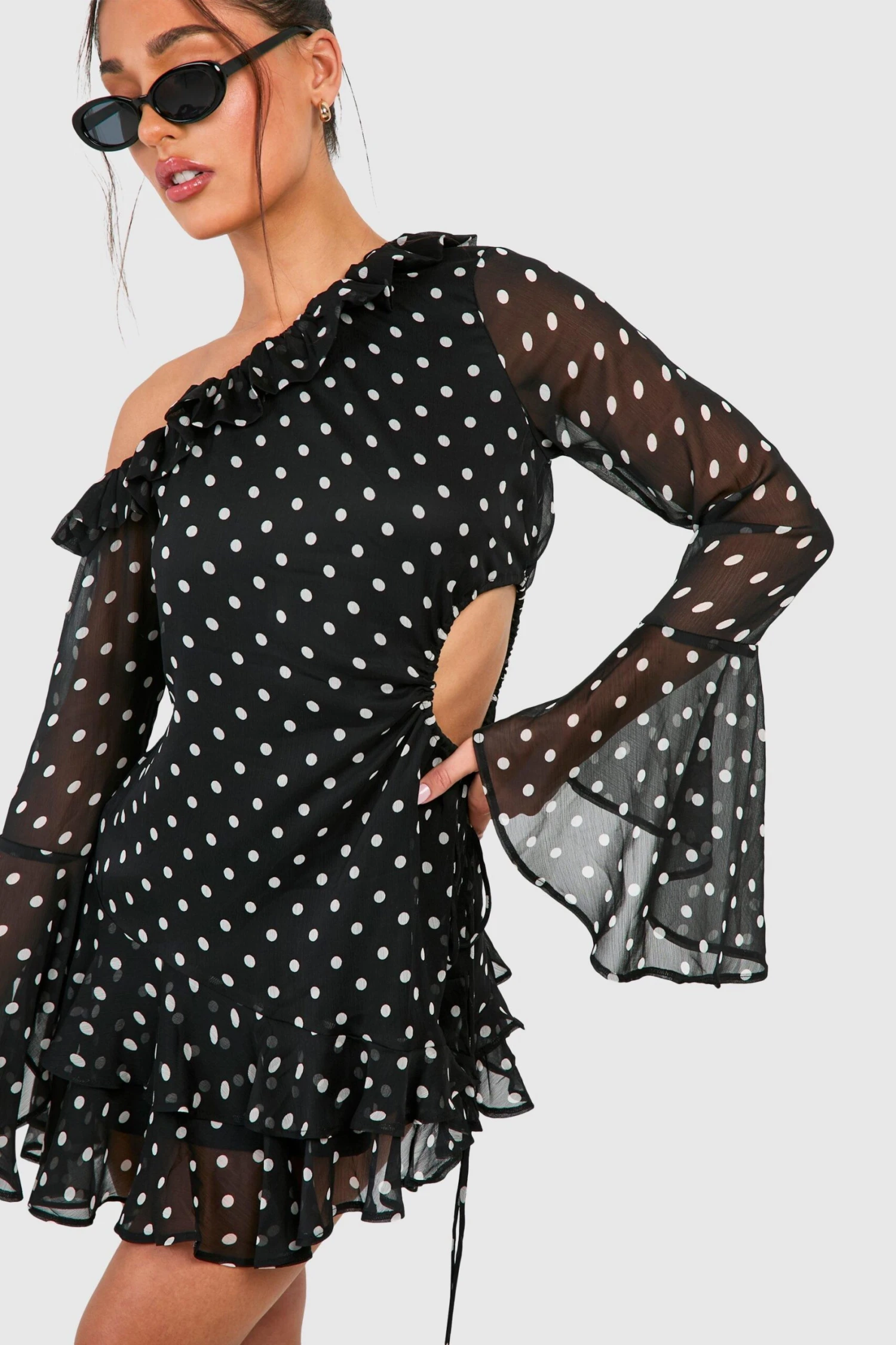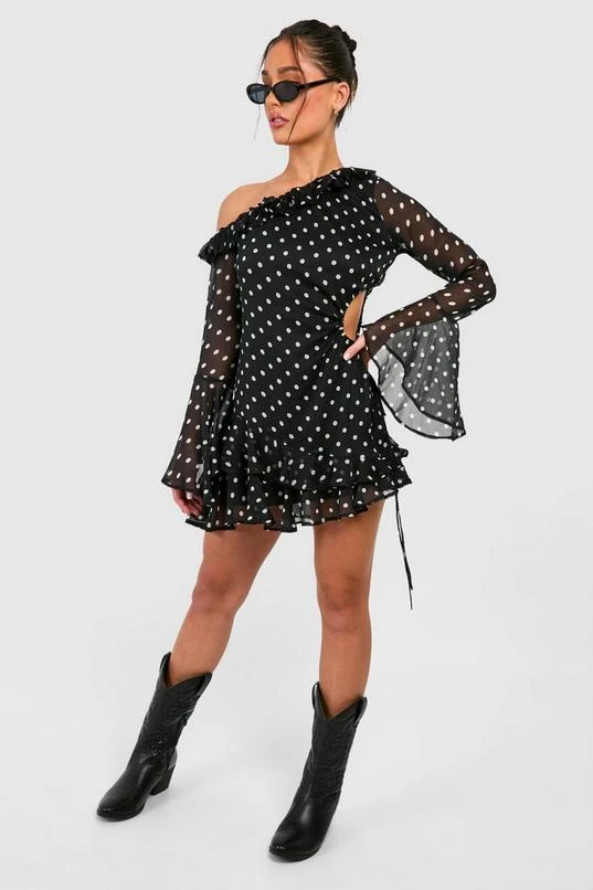 BOOHOO Petite Polka Dot Chiffon Mini Dress