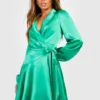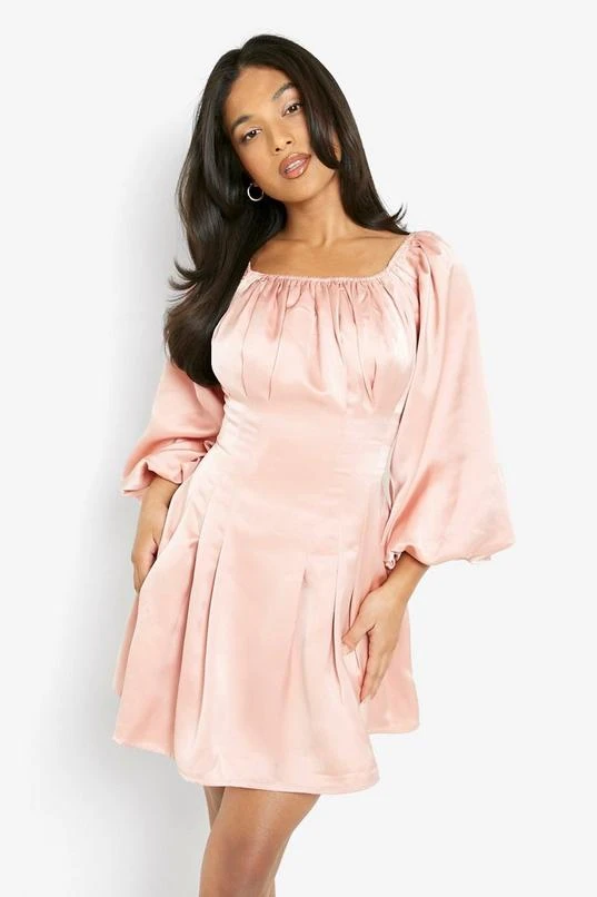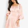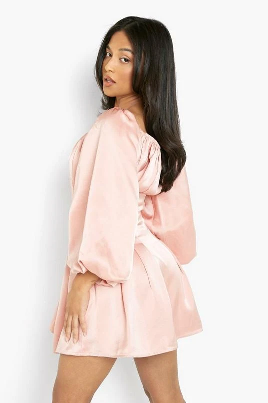 BOOHOO Petite Premium Satin Puff Sleeve Mini Dress