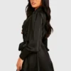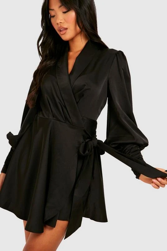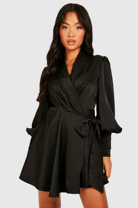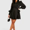 BOOHOO Petite Premium Satin Wrap Skater Dress