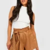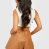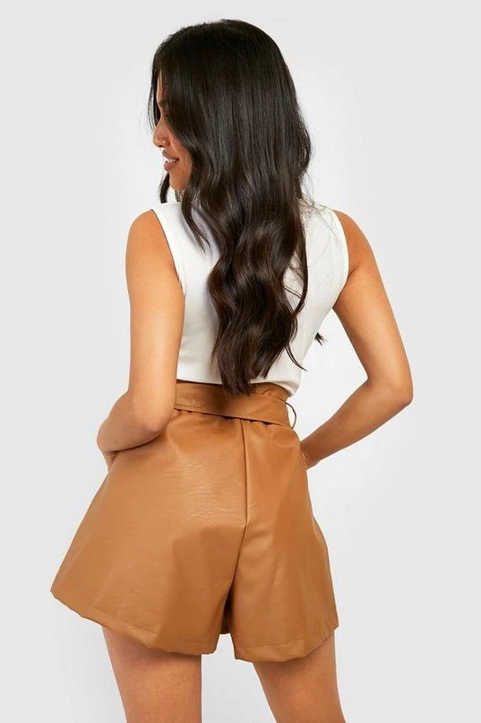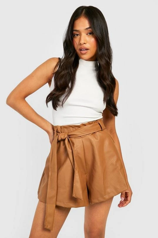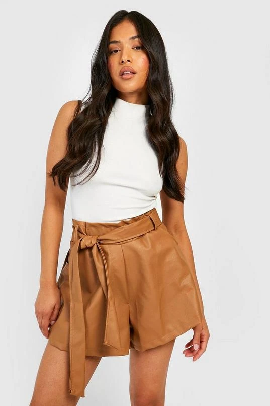 BOOHOO Petite Pu Paperbag Waist Shorts