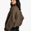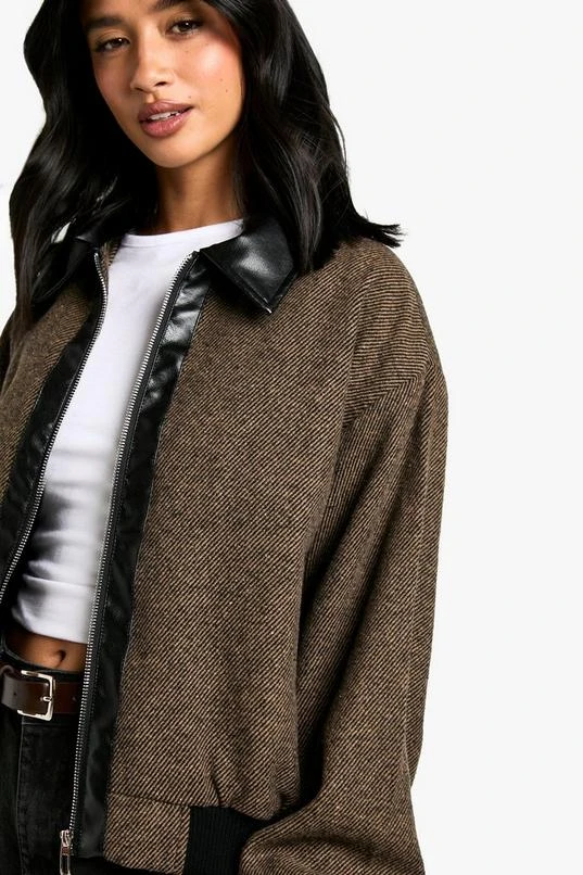 BOOHOO Petite PU Trim Wool Look Bomber Jacket