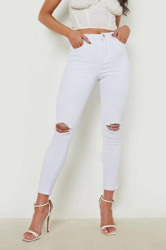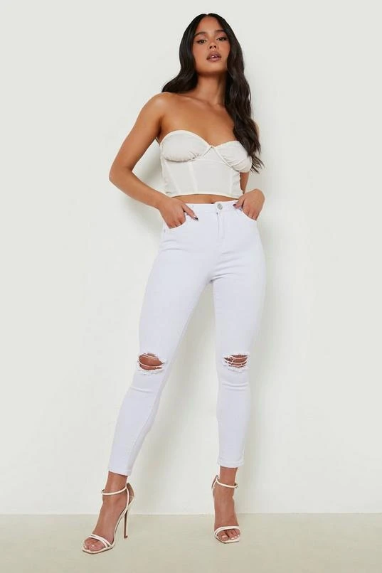BOOHOO Petite Recycled Distressed Skinny Jean