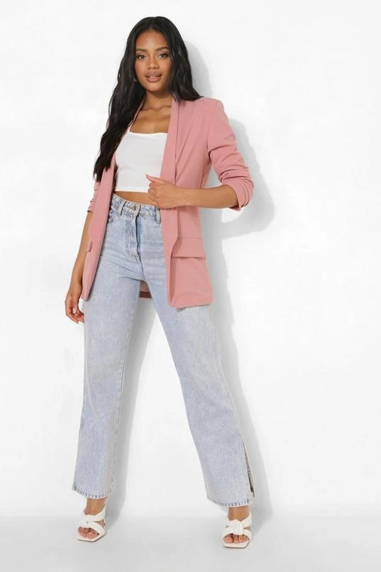 BOOHOO Petite Ruched Sleeve Blazer