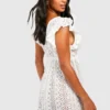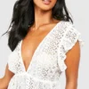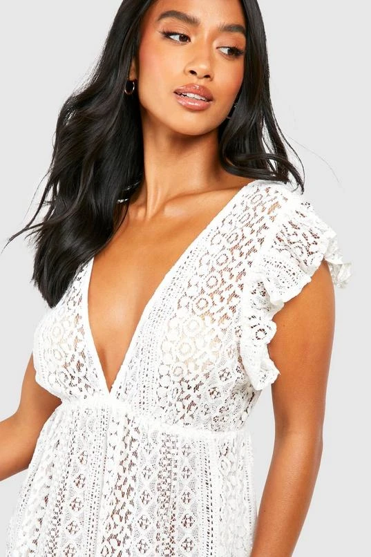 BOOHOO Petite Ruffle Lace Plunge Beach Mini Dress